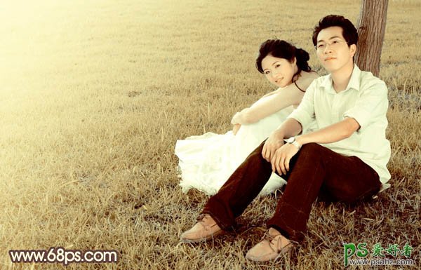 PS调色教程:给情侣外景写真照调出纯美的黄褐色