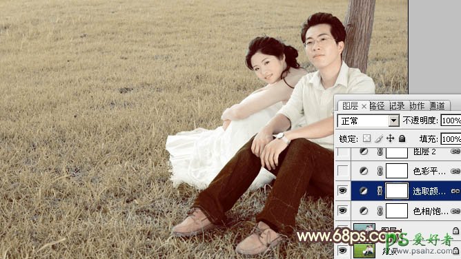 PS调色教程:给情侣外景写真照调出纯美的黄褐色