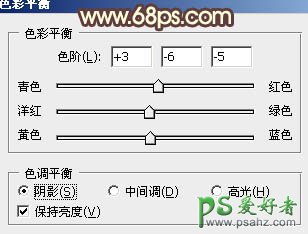 4、创建色彩平衡调整图层,对阴影、中间调、高光进行调整,参数设置如图9 - 11,效果如图12。这一步微调图片的暗部及高光,增强对比度。
