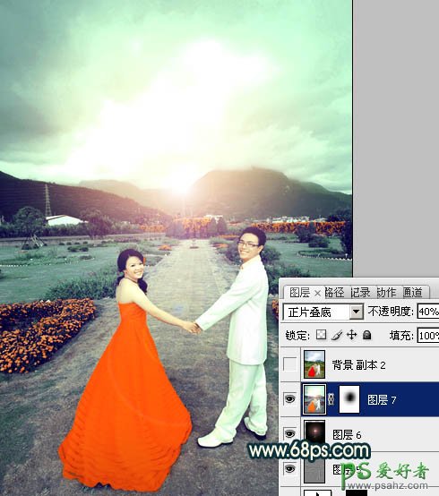12、新建一个图层,按Ctrl + Alt + Shift + E 盖印图层。混合模式改为“正片叠底”,不透明度改为:40%,加上图层蒙版,用黑色画笔把中间部分擦出来,效果如下图。