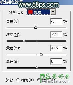 2、创建可选颜色调整图层,对红、青、白、黑进行调整,参数设置如图2 - 5,效果如图6。这一步把图片中的红色转为橙红色,青色转为青绿色。