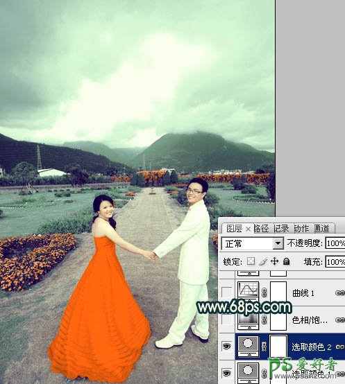 photoshop调出经典的青色效果情侣婚片艺术照