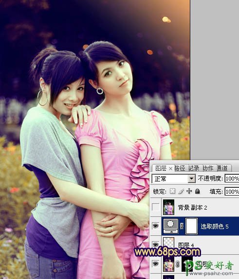 PS给一对秀气的漂亮姐妹写真图片调出柔和的暗调黄紫色