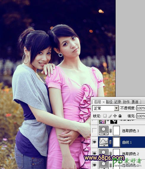 PS给一对秀气的漂亮姐妹写真图片调出柔和的暗调黄紫色