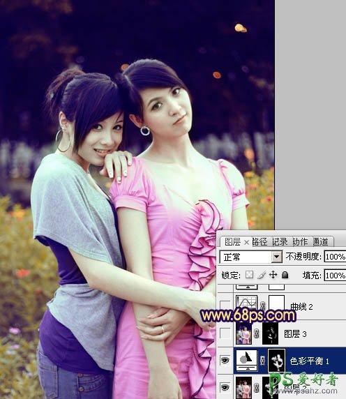 PS给一对秀气的漂亮姐妹写真图片调出柔和的暗调黄紫色