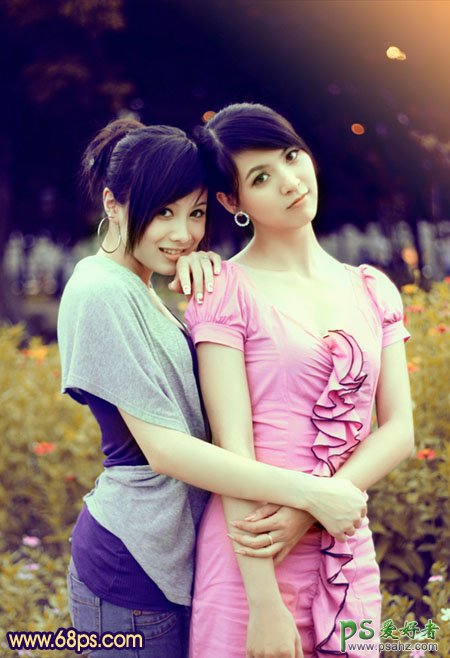 今天我们来学习一篇PS美女照片调色实例教程,PS给一对秀气的漂亮姐妹写真图片调出柔和的暗调黄紫色,黄紫色图片调色较为简单。只需要对图片的暗部及高光部分调色。高光部分调成橙黄色,暗部调成蓝紫色,人物部分再根据图片的色彩构成适当润色即可。