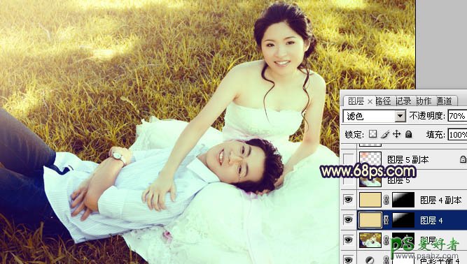 12、新建一个图层,混合模式改为“滤色”,把前景颜色设置为淡黄色,用画笔给图片的左上角增加一些高光,效果如下图。