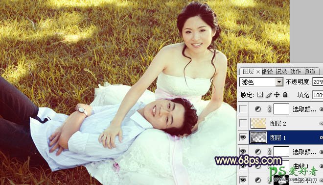 5、按Ctrl + Alt + ~ 调出高光选区,按Ctrl + Shift + I 反选。新建一个图层填充暗蓝色:#371F41,混合模式改为“滤色”,不透明度改为:20%,效果如下图。这一步增加暗部蓝色。
