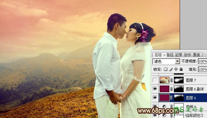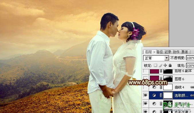 PS调色教程:给一对接吻中的情侣婚片调出落日霞光色