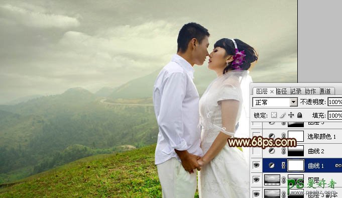PS调色教程:给一对接吻中的情侣婚片调出落日霞光色