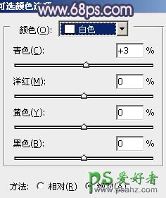 12、创建可选颜色调整图层,对白,黑进行调整,参数设置如图24,25,效果如图26。
