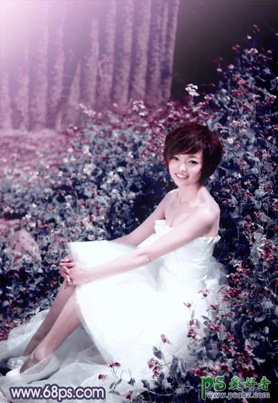 PS调色教程:给外景美女婚纱照快速调出古典暗调青紫色