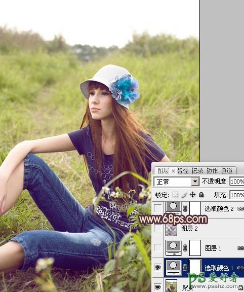 PS调色教程:给外景欧美少女图片调出鲜艳的蓝黄色