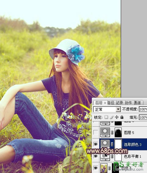 PS调色教程:给外景欧美少女图片调出鲜艳的蓝黄色