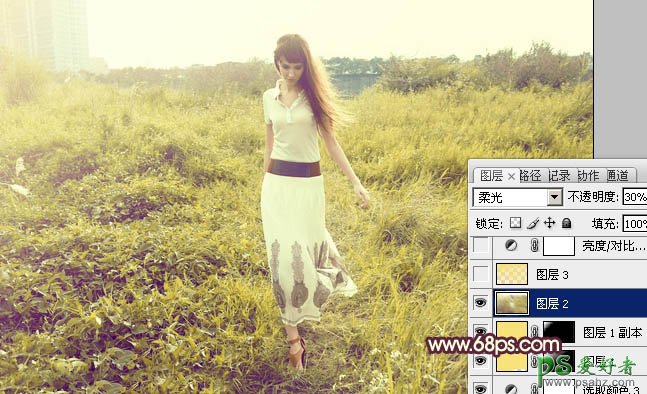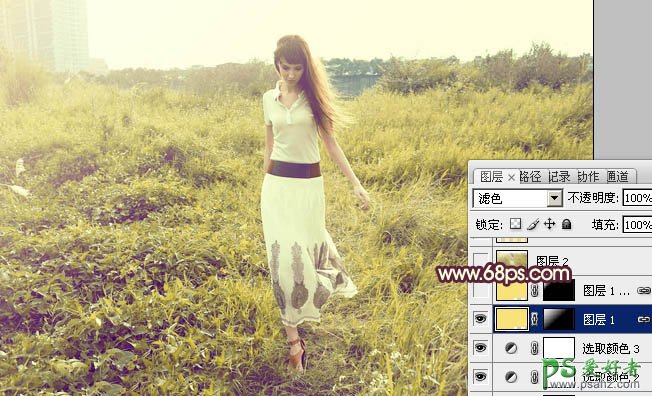 5、新建一个图层,填充淡黄色:#F7E179,混合模式改为“滤色”,按住Alt键添加图层蒙版,用白色画笔把左上角的高光部分擦出来,效果如下图。