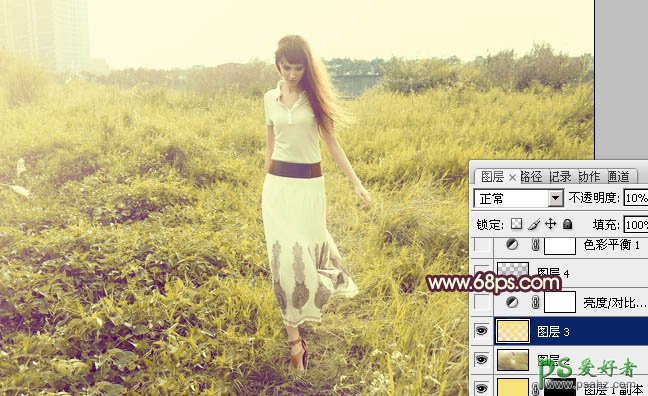 7、按Ctrl + Alt + ~ 调出高光选区,新建一个图层填充淡黄色:#F7E17A,不透明度改为:10%,效果如下图。