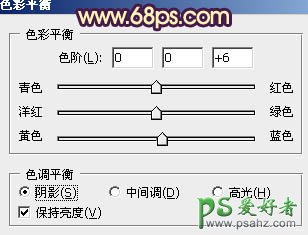 3、创建色彩平衡调整图层,对阴影,高光进行调整,参数设置如图8,9,确定后把图层不透明度改为:50%,效果如图10。这一步给图片暗部增加蓝色。