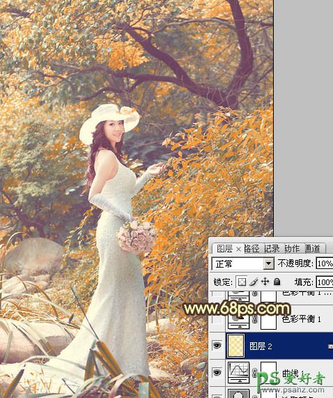 6、按Ctrl + Alt + ~ 调出高光选区,新建一个图层填充淡黄色:#FFEA85,确定后把不透明度改为:10%,效果如下图。