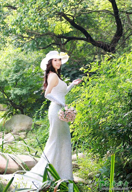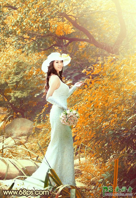今天我们来学习一篇美女PS婚片调色实例教程,photoshop给超美的外景婚片性感少女调出漂亮的橙红色,橙红色也是常用的色调。比较适合背景树木较多的外景人物图片。大致调色过程:先把图片高亮的黄绿色转为橙色,然后把绿色部分转为黄绿色。再在暗部增加一些补色即可。