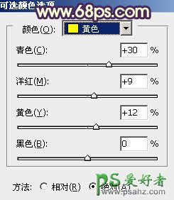 12、创建可选颜色调整图层,对黄、白、黑进行调整,参数设置如图24 - 26,效果如图27。这一步微调暖色部分的颜色。
