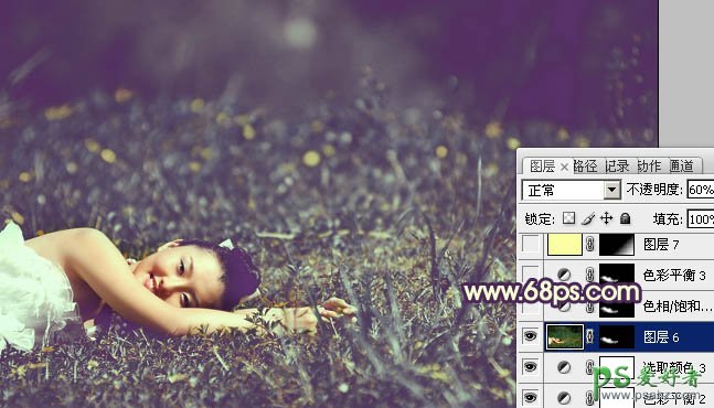13、把背景图层复制一层,按Ctrl + Shift + ] 置顶。按住Alt键添加图层蒙版,用白色画笔把人物部分擦出来,再把不透明度改为:60%,效果如下图。
