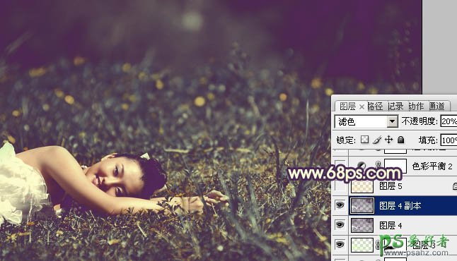 9、按Ctrl + J 把当前图层复制一层,混合模式改为“滤色”,不透明度改为:20%,效果如下图。