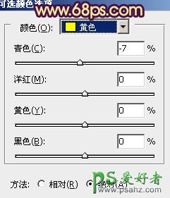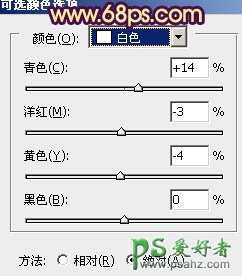 11、创建可选颜色调整图层,对黄,白进行调整,参数设置如图23,24,效果如图25。这一步微调高光部分的颜色。