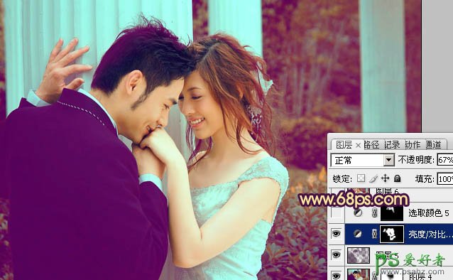 13、调出人物部分的选区,创建亮度/对比度调整图层,参数设置如图27,确定后适当降低图层不透明度,效果如图28。