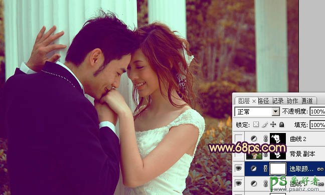 photoshop给清纯情侣婚片调出柔美的紫色风格