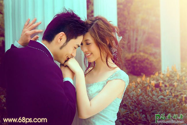 今天我们来学习一篇PS婚片调色教程实例,photoshop给清纯情侣婚片调出柔美的紫色风格,素材图片色调较暗,比较适合暗色。调色的时候重点要把暗部的颜色调好,可以选择一些流行的暗紫色或暗蓝色。然后再微调一下高光及人物部分的颜色即可。