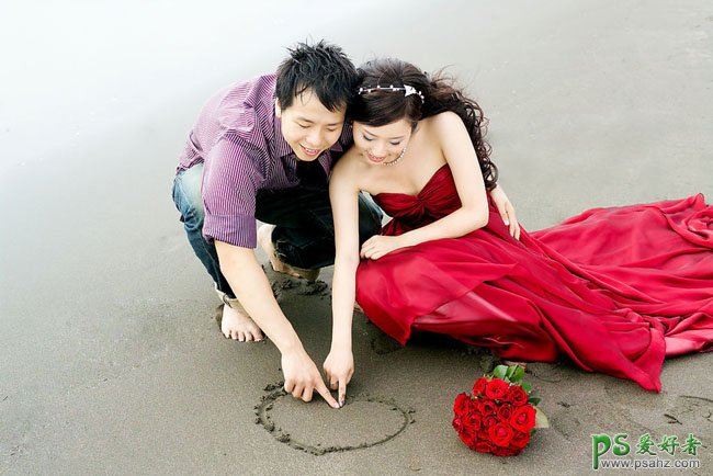 今天我们一起来学习一篇PS婚片调色教程实例,漂亮的情侣婚纱艺术照调色,PS给浪漫海景婚片调出时尚的青紫艺术风格,青紫色也是一组比较好搭配的颜色。最好素材图片中有比重恰当的红色或紫色。这样只需要在高光或中性色上增加一些青色即可。背景部分的其他颜色也可以转为青色或淡青色。