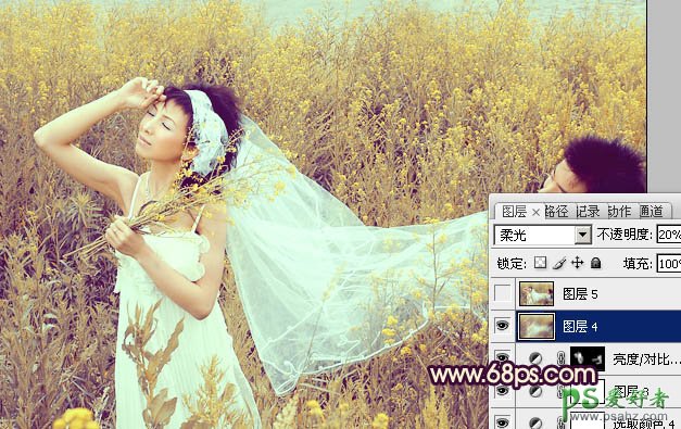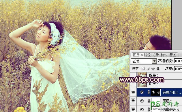 13、创建亮度/对比度调整图层,参数设置如图25,确定后把蒙版填充黑色,用白色画笔把人物脸部及肤色部分擦出来,效果如图26。