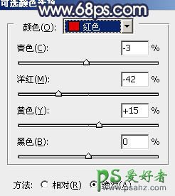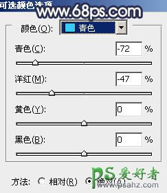 2、创建可选颜色调整图层,对红、青、白、黑进行调整,参数设置如图2 - 5,效果如图6。这一步把图片的主色转为青黄色。