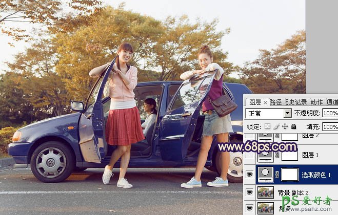 photoshop给逆光的美女图片街景照调出漂亮的橙紫色