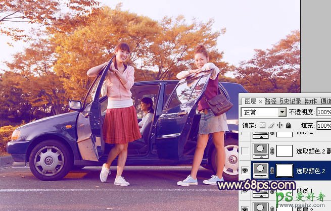 photoshop给逆光的美女图片街景照调出漂亮的橙紫色
