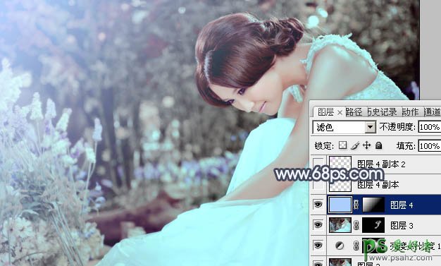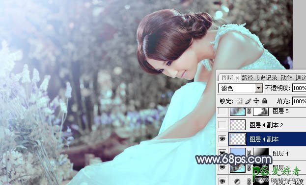8、新建一个图层,填充淡蓝色:#ACCEFC,混合模式改为“滤色”,按住Alt键添加图层蒙版,用白色画笔把左上角部分擦出来,增加图片的高光,效果如下图。