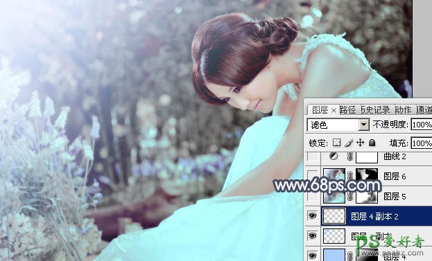 10、新建一个图层,混合模式改为“滤色”,把前景颜色设置为淡紫色:#E8B0FC,用画笔把左上角涂上前景色,加强高光,效果如下图。