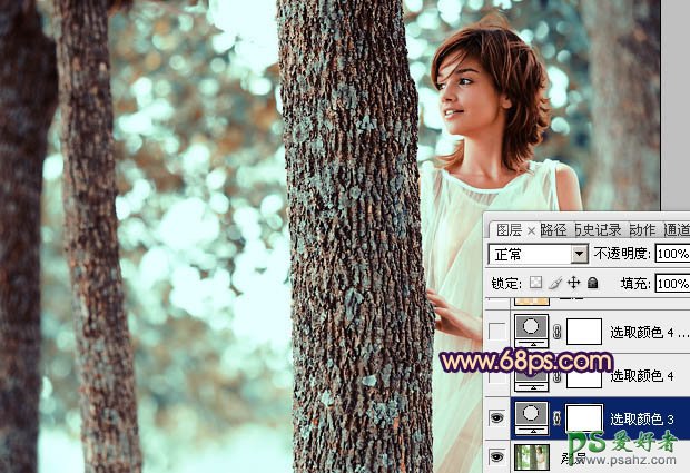 PS给欧美少女森林艺术照调出青黄灿烂的效果