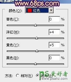 2、创建可选颜色调整图层,对红、黄、洋红、白、黑进行调整,参数设置如图6 - 10,效果如图11。这一步增加暗部褐色。