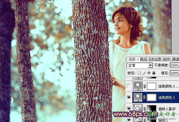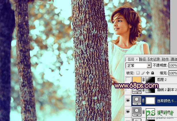 PS给欧美少女森林艺术照调出青黄灿烂的效果