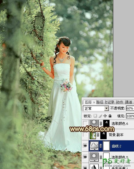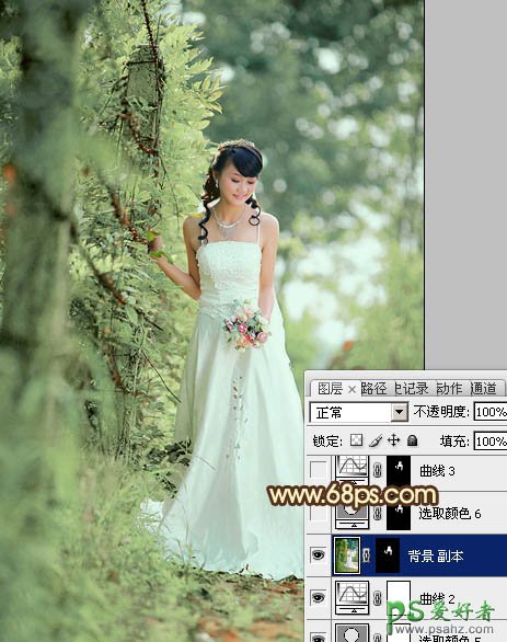9、经过几步的调色后,人物脸部及肤色有点偏色,需要重新修复。把背景图层复制一层,按Ctrl + Shift + ] 置顶,按住Alt键添加图层蒙版,用白色画笔把人物脸部及肤色部分擦出来,效果如下图。