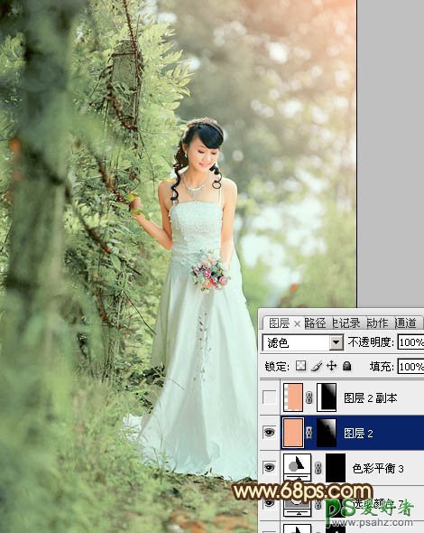 11、新建一个图层,填充粉红色:#F6AF8D,混合模式改为“滤色”,按住Alt键添加图层蒙版,用白色画笔把右上角部分的高光擦出来,效果如下图。