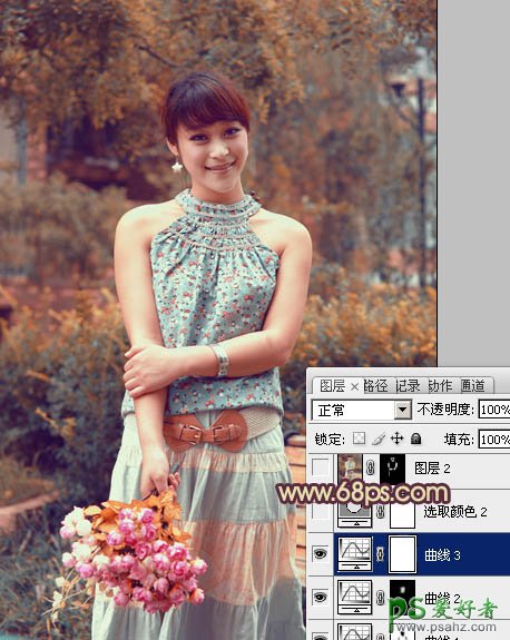 PS调色教程:给公园里的MM照片调出漂亮的黄昏色