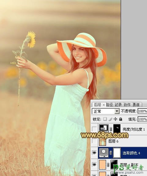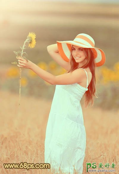 PS给葵花地里漂亮的欧美女孩儿写真照调出暖味的甜美色