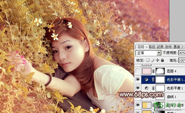 8、按Ctrl + J 把当前色彩平衡调整图层复制一层,不透明度改为:30%,加强高光部分的颜色,效果如下图。