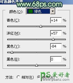 2、创建可选颜色调整图层,对红、绿、青、蓝、白进行调整,参数设置如图2 - 6,效果如图7。这一步把图片的主色转为青黄色。