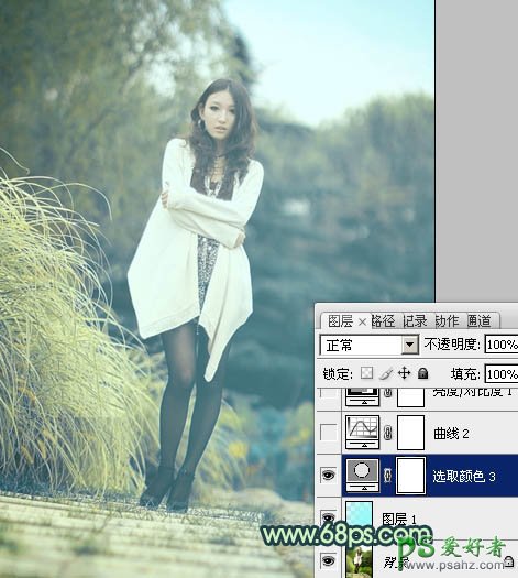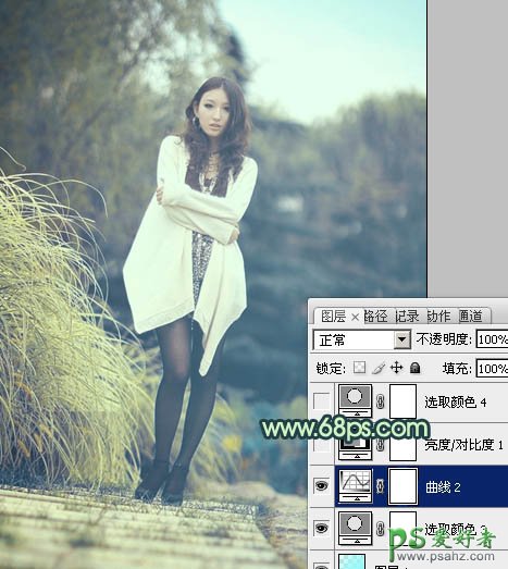 PS调色教程:给黑丝性感美女图片调出韩系淡青色