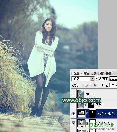 7、创建亮度/对比度调整图层,参数设置如图20,确定后把蒙版填充黑色,用白色画笔把人物脸部擦出来,效果如下图。这一步增加人物脸部质感。