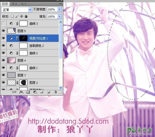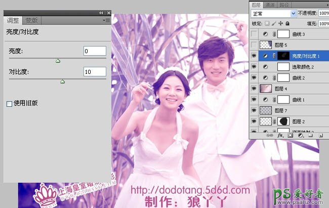 12、新建亮度/对比度调节图层,参数设定见P21,确认后将蒙板填充黑色,用白色画笔将人物脸部的高光部分抹出来。