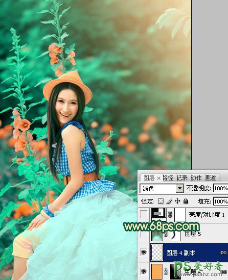 PS给绿调新清少女写真照调出个性粉橙色效果